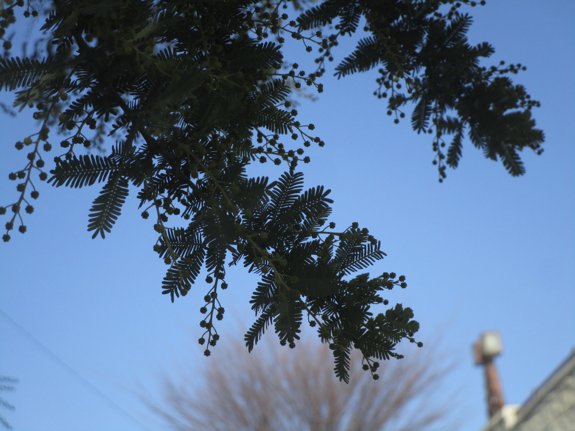 春を告げる花、ミモザは、もう黄色い小さな鞠を作っていました。これはシルエットになるように撮りましたが、青空に黄色が映えていました。季節は春に向かっているのですね。(本日亡夫の誕生日)