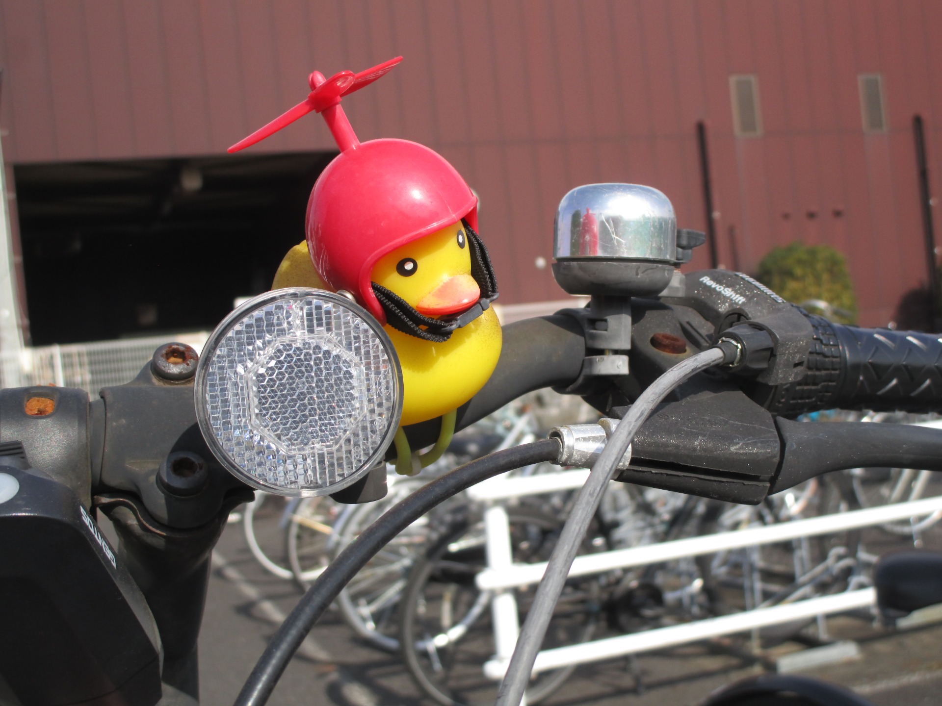 駐輪場で出会ったあひる隊長たち。流行っているんですかね。