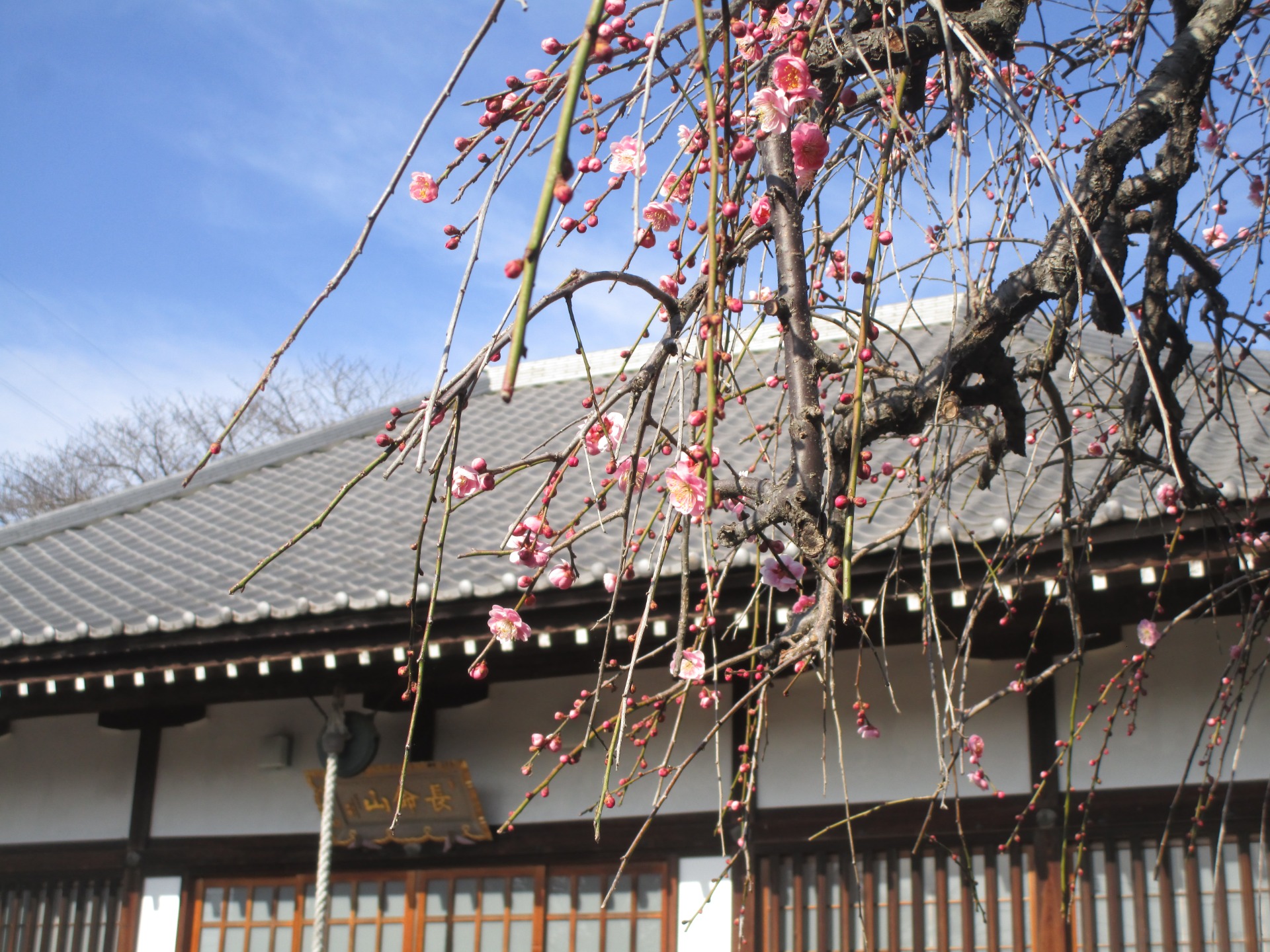 枝垂れ梅がきれいでした。写真の撮り方の見本みたいですが、気に入っています。静かな境内に入ったら、なぜかコーヒーのいい香りが漂ってきました。ミスマッチもいいかも。現代的な住職か。