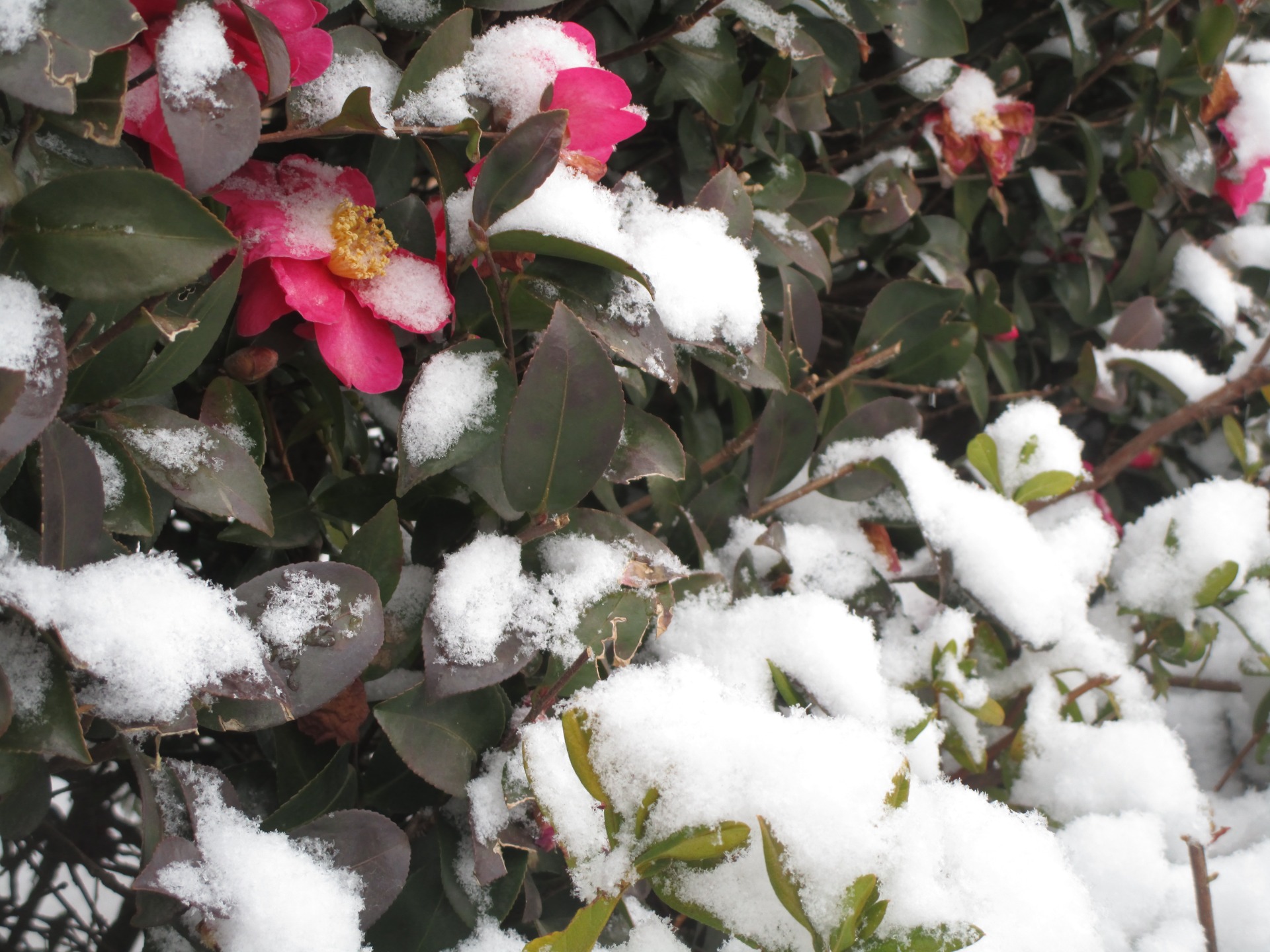 昨日は予報以上の雪で驚きました。当地5cm積雪と聞きました。日中も雪が残っていたので、急いで撮りに出なくもよかったのですが、明るくなるのを待って飛び出しました。紅と白と緑。カメラ女子?