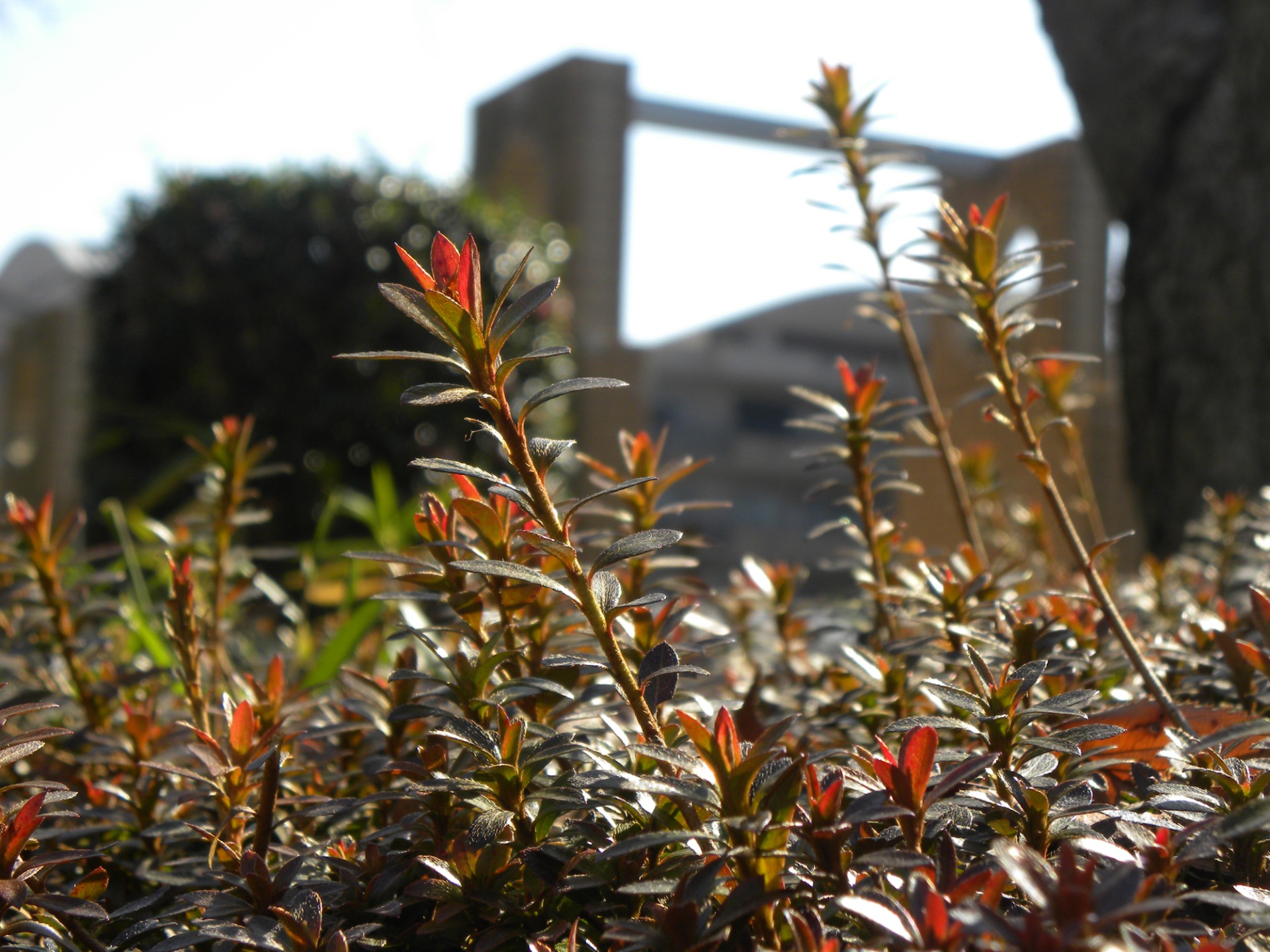 赤い新芽も若草というのか分かりませんが、伸びる、成長する過程を見るのは、元気が貰えます。今日は写真に注目。絞りを開放近くにすると、ピントの合う箇所が限られ、他はボケます。ローアングルで狙いました。