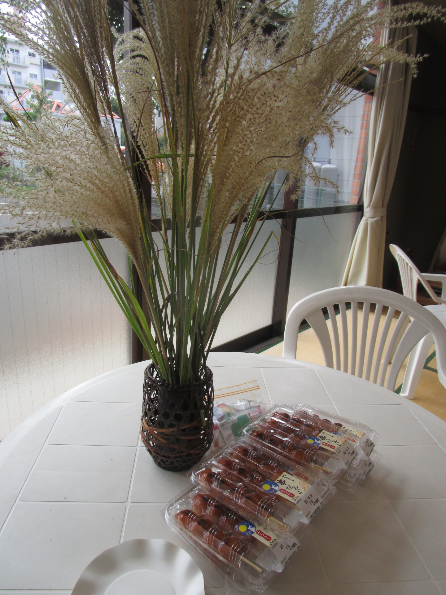 中秋の名月の当日、月2回開催の高齢者サロンがありました。参加者さんが持ってきてくれた芒を飾り、