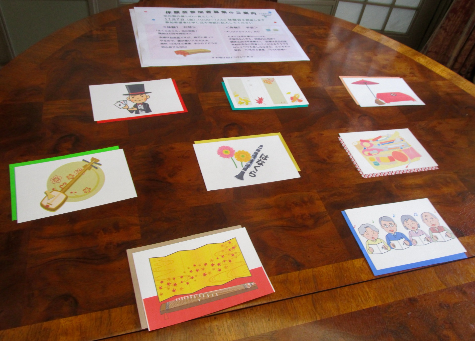 住んでいるシニアマンションの文化祭、まもなく開催です。お知らせ用の掲示が終わりました。概ね良好。