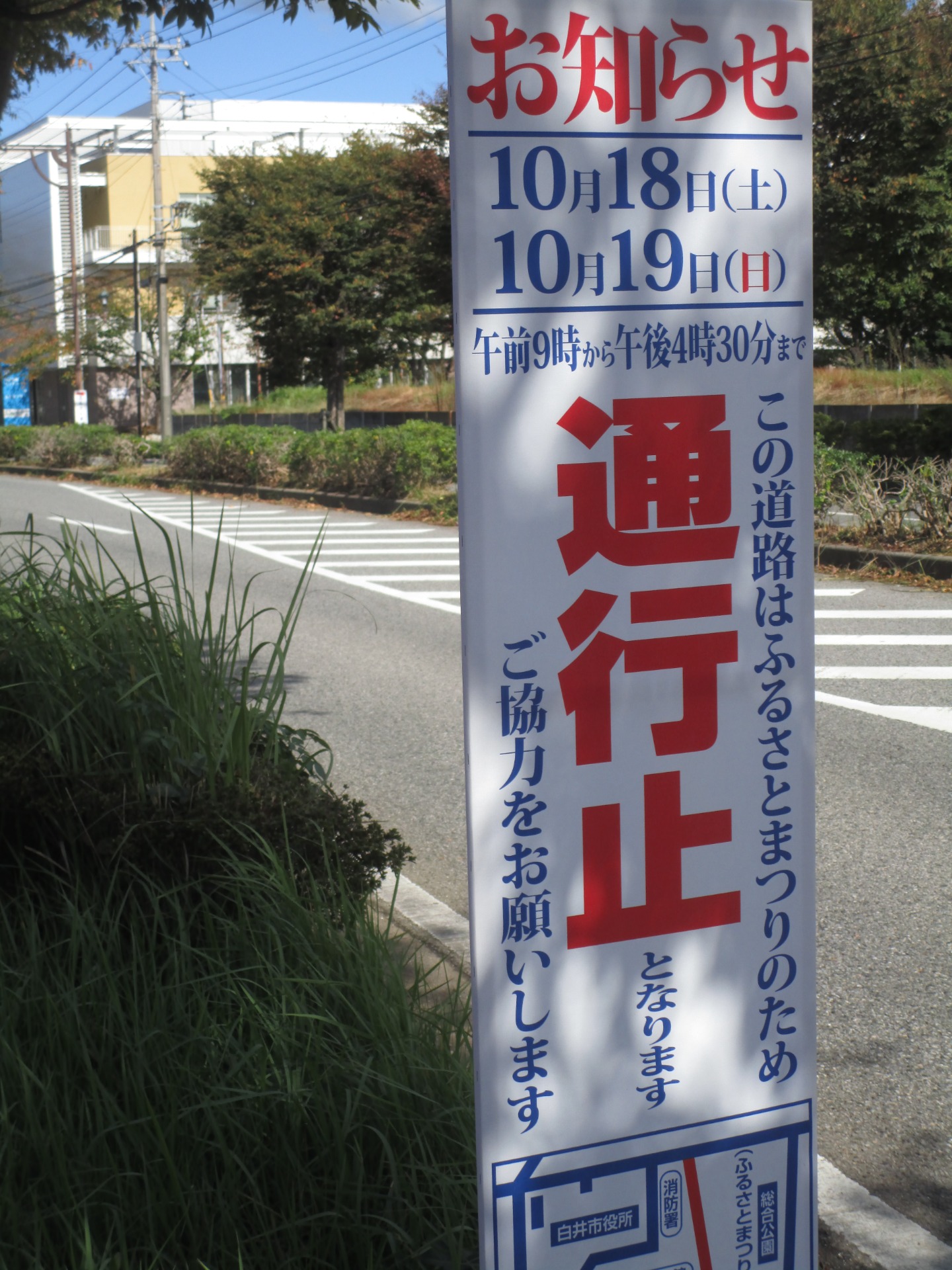 今日から二日間、白井市ではまちを挙げての「ふるさとまつり」が行われます。会場に続く道路は通行止め。