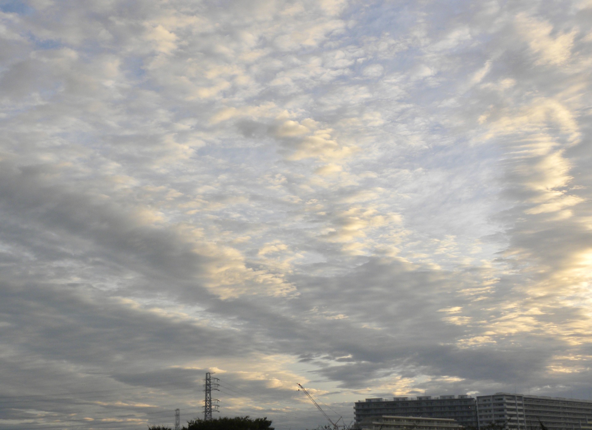 すっきり高い青空も秋の空ですが、こんな空の時もあります。19日朝起きたら、何か不思議な空でした。