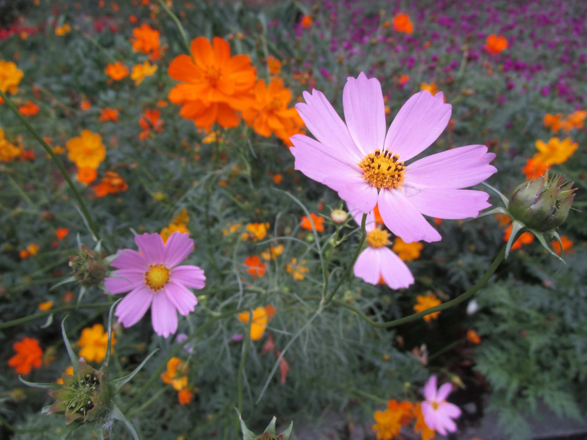 ピンクのコスモスを撮っていたら、キバナコスモス、千日紅などが映り込んでいました。一面のコスモス畑も美しいのですが、こんなさりげない絵も好きです。それにしても急に朝晩冷え込むようになりましたね。