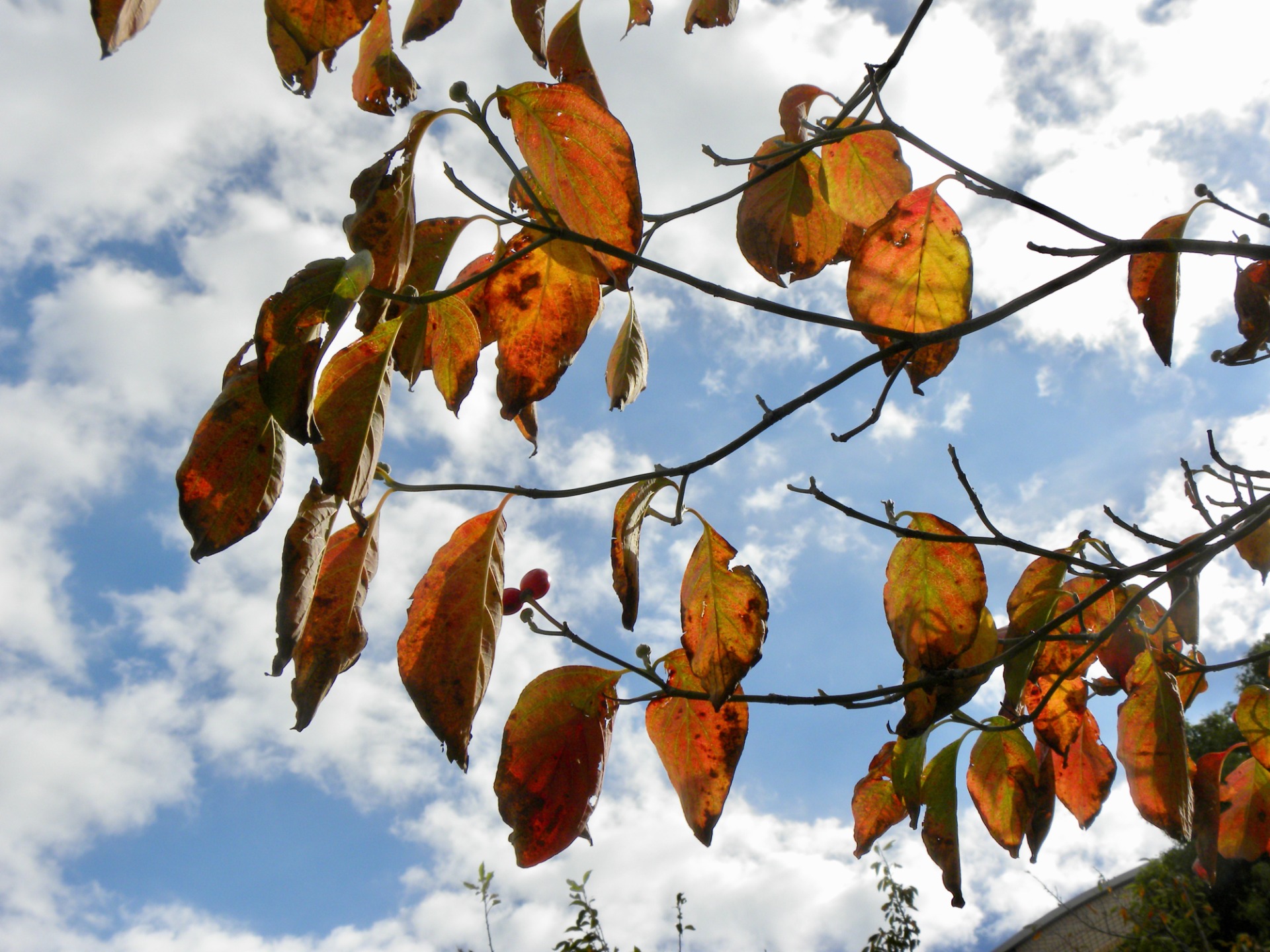 久しぶりの青空。秋らしい紅葉が映えていました。快晴ではないこんな空も風情があります。