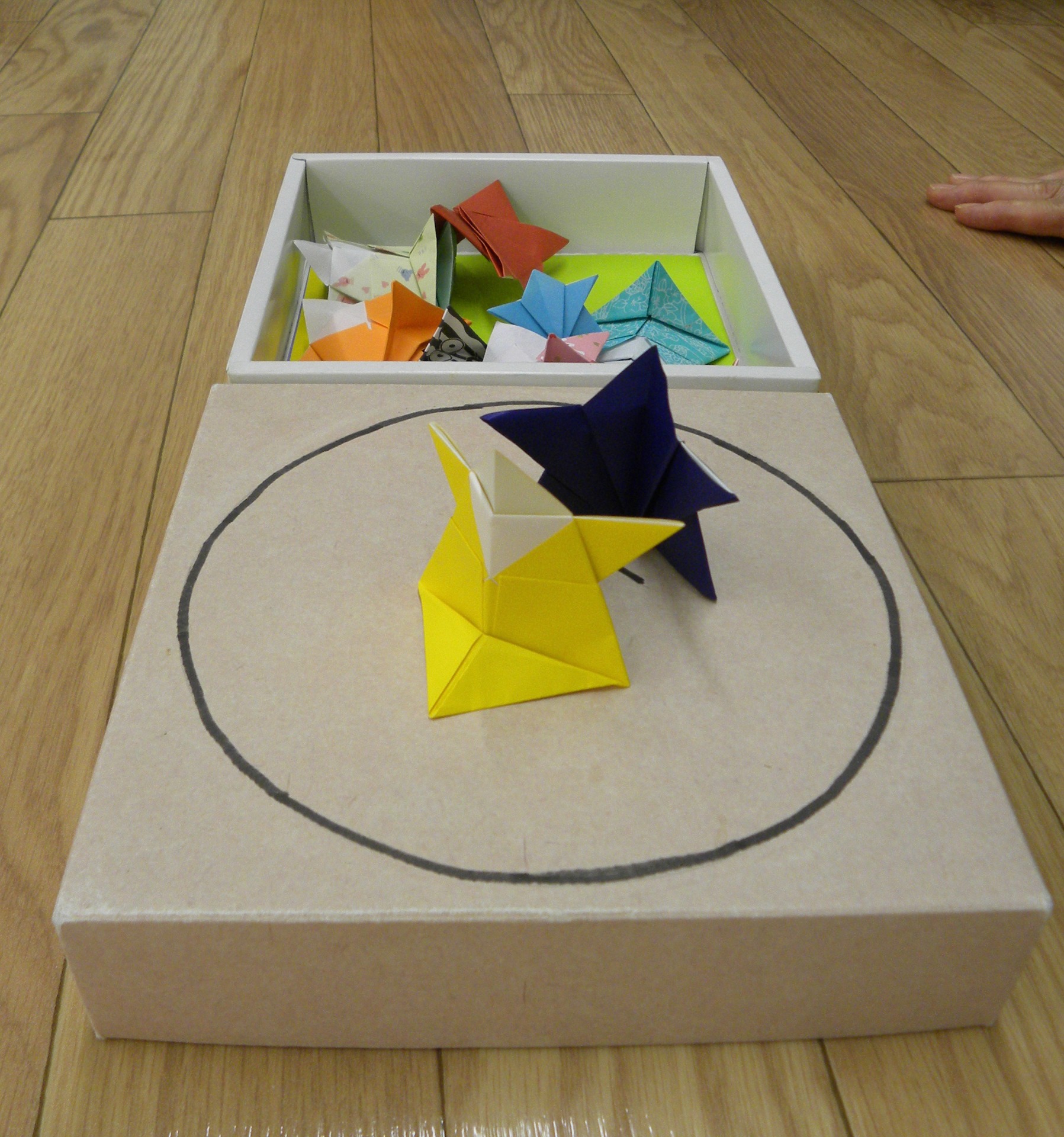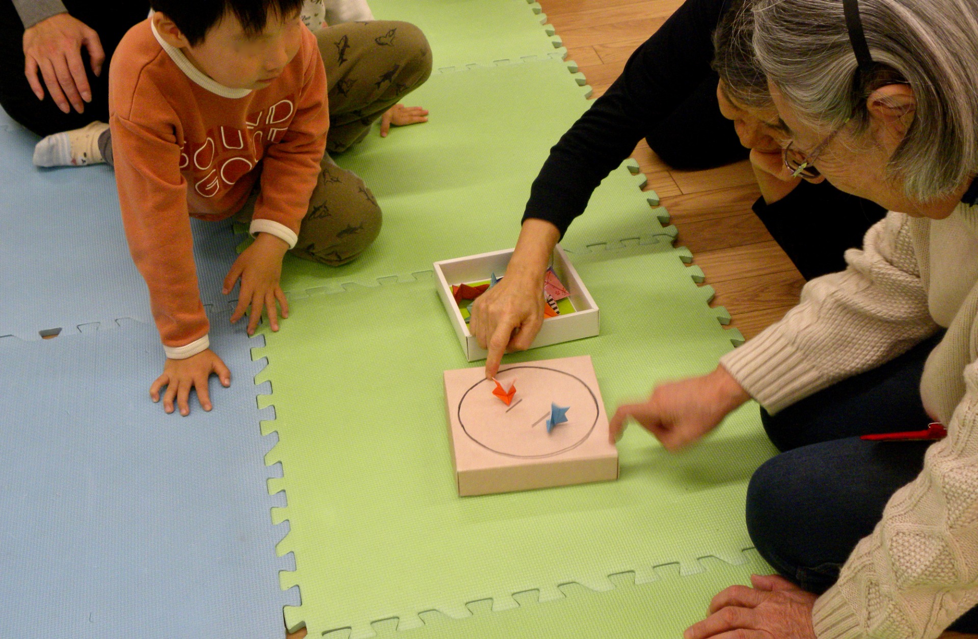 月一回のおはなし会。今日のお土産は折り紙の力士2人。こんなレトロのものが意外と受けていました。