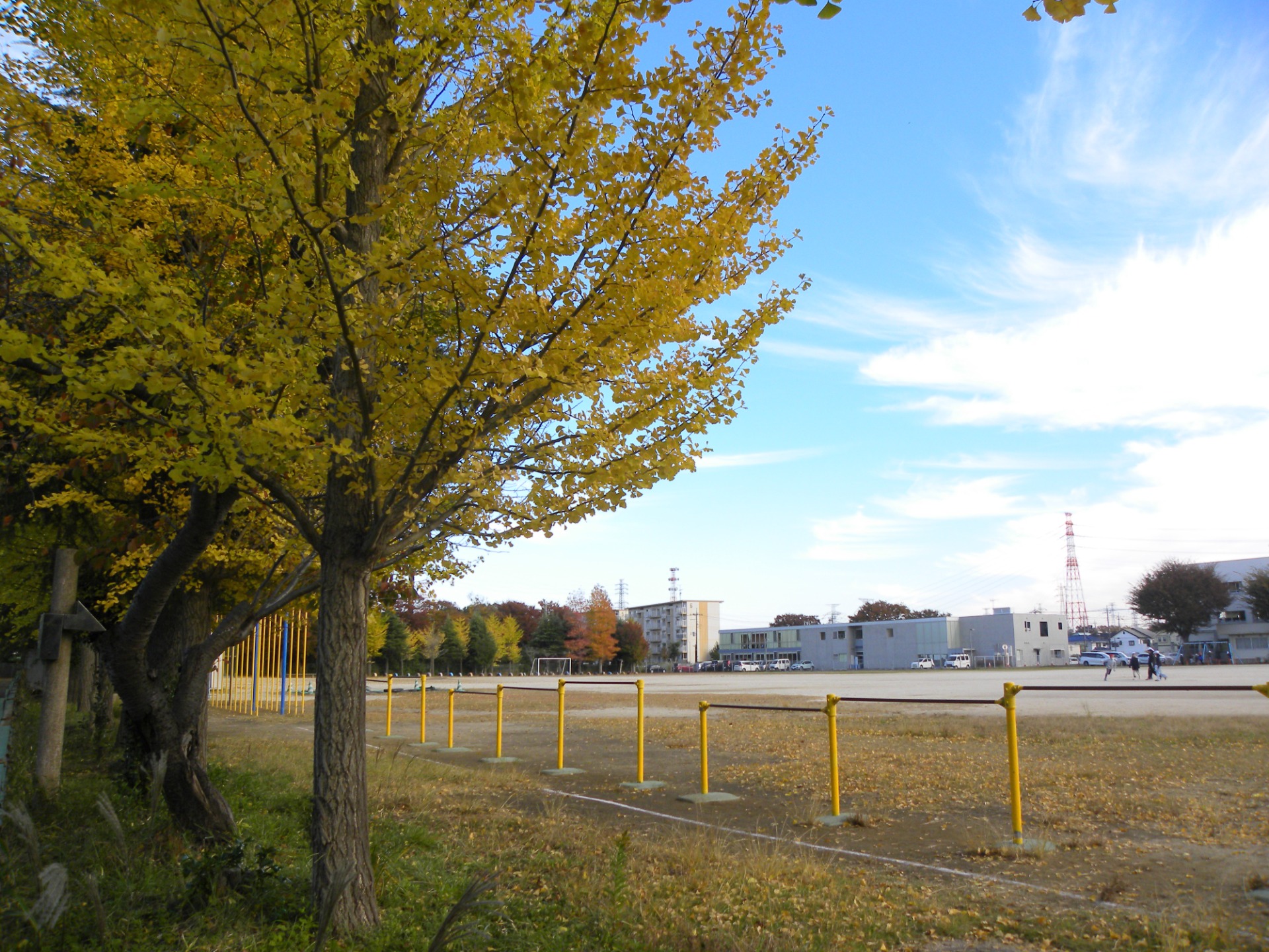 青空に銀杏と鉄棒の黄色(あおぞらといちょうとてつぼうのきいろ)11/13 木