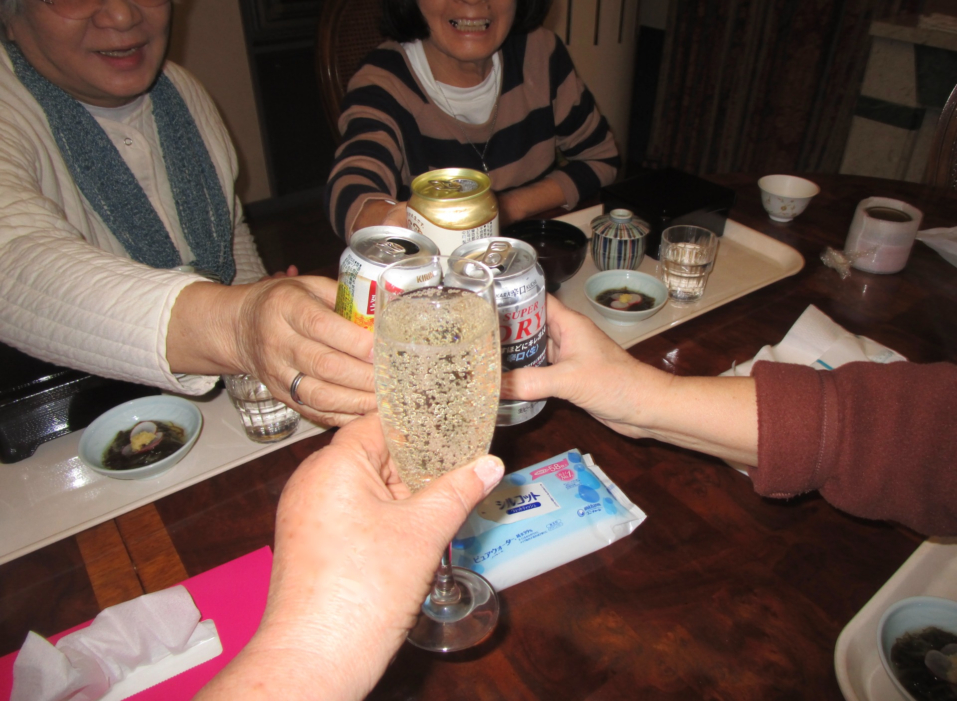 誕生日が近い三人で合同誕生会をしました。非日常の静かな空間、久しぶりの三人の会話、美味しいご馳走。