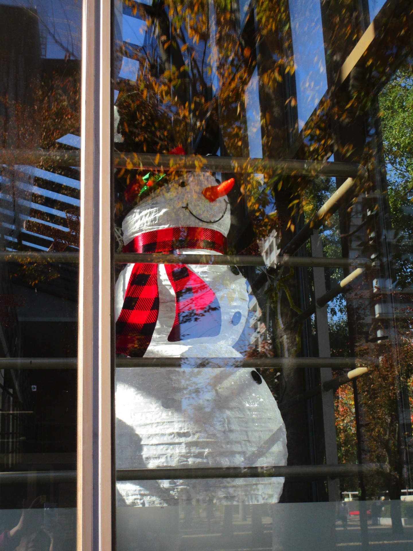 昨日快晴。外から見えるように建物の内側に大きなスノーマンが飾られていました。クリスマスの飾り付けが始まりました。11月も半ば。これから慌ただしい時期になりますね。でもこの飾りにはほっこりします。