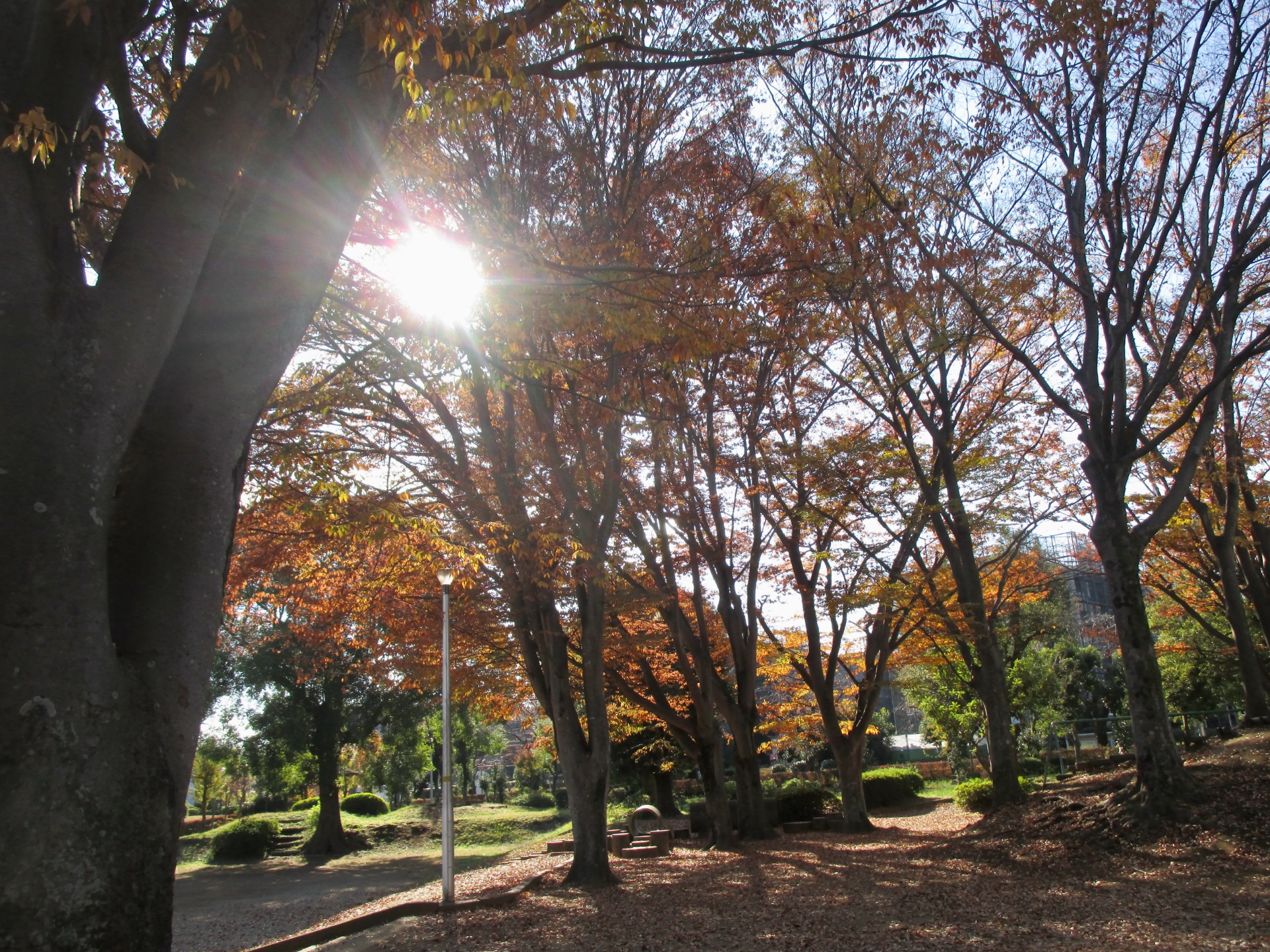 誰もいない公園落ち葉と私((だれもいないこうえんおちばとわたし)11/21 金