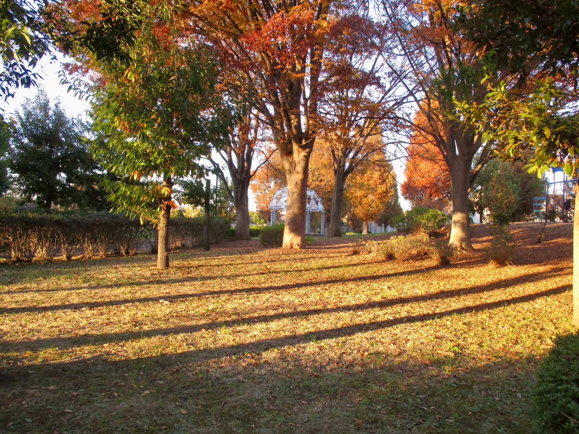 あまり行かない公園へ。だあれもいない。だからこそ自然と対話できたような気がします。晩秋の光の中、色づいた木々、落ち葉、長い影。空を見上げ、深呼吸して、とてもいい時間でした。