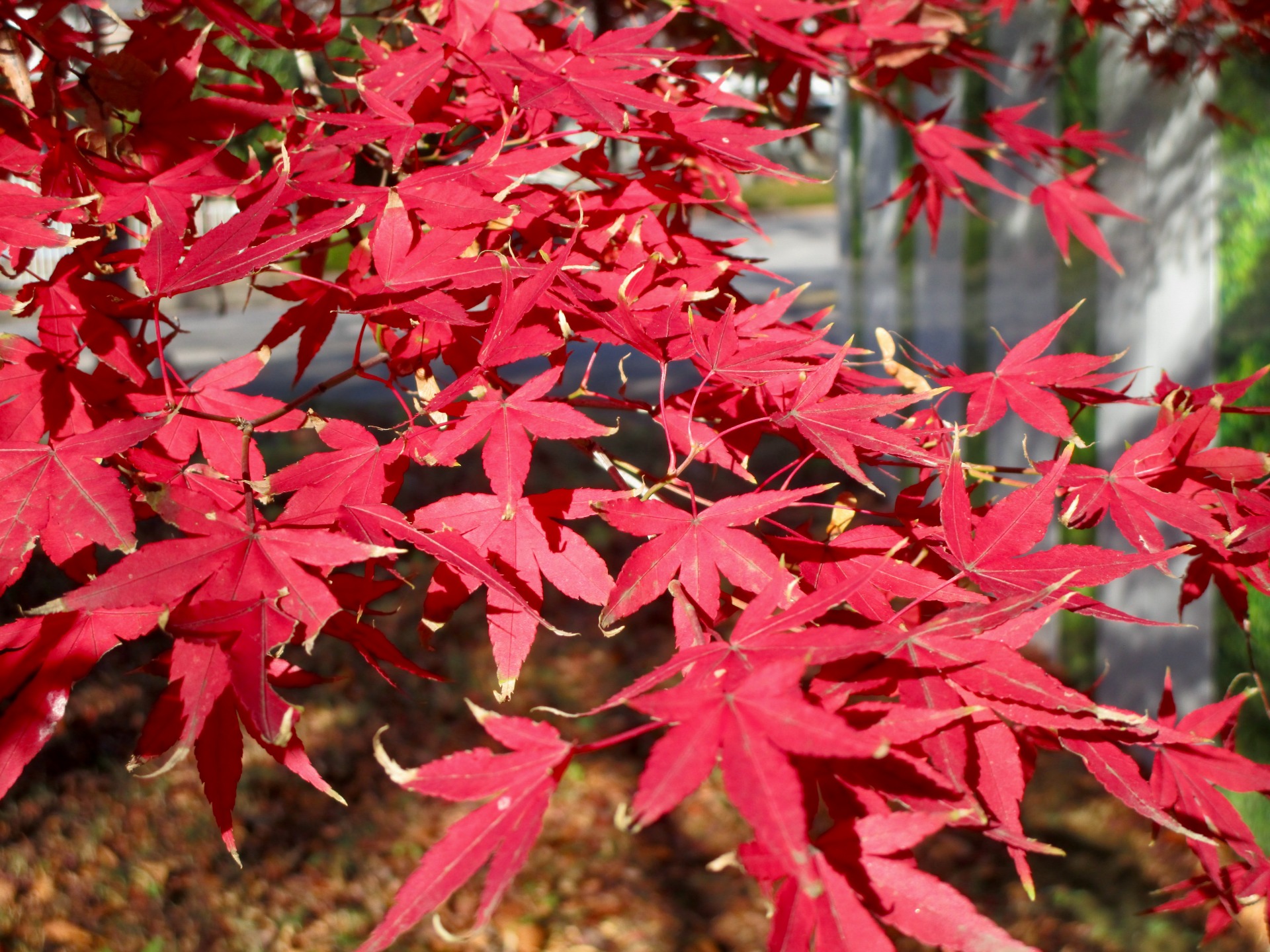 真っ赤な紅葉に会いました。日差しを受けて燃えるようでした。あの道、この道、歩いてみるものですね。