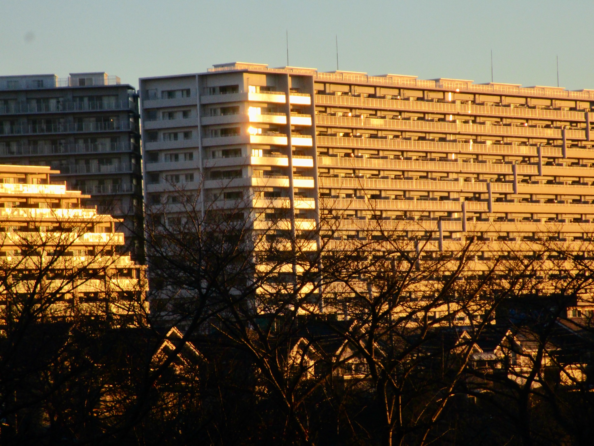 昨日の冬夕焼けに続き、今日は朝日です。住まいから見える朝日に輝くこの風景も好きです。