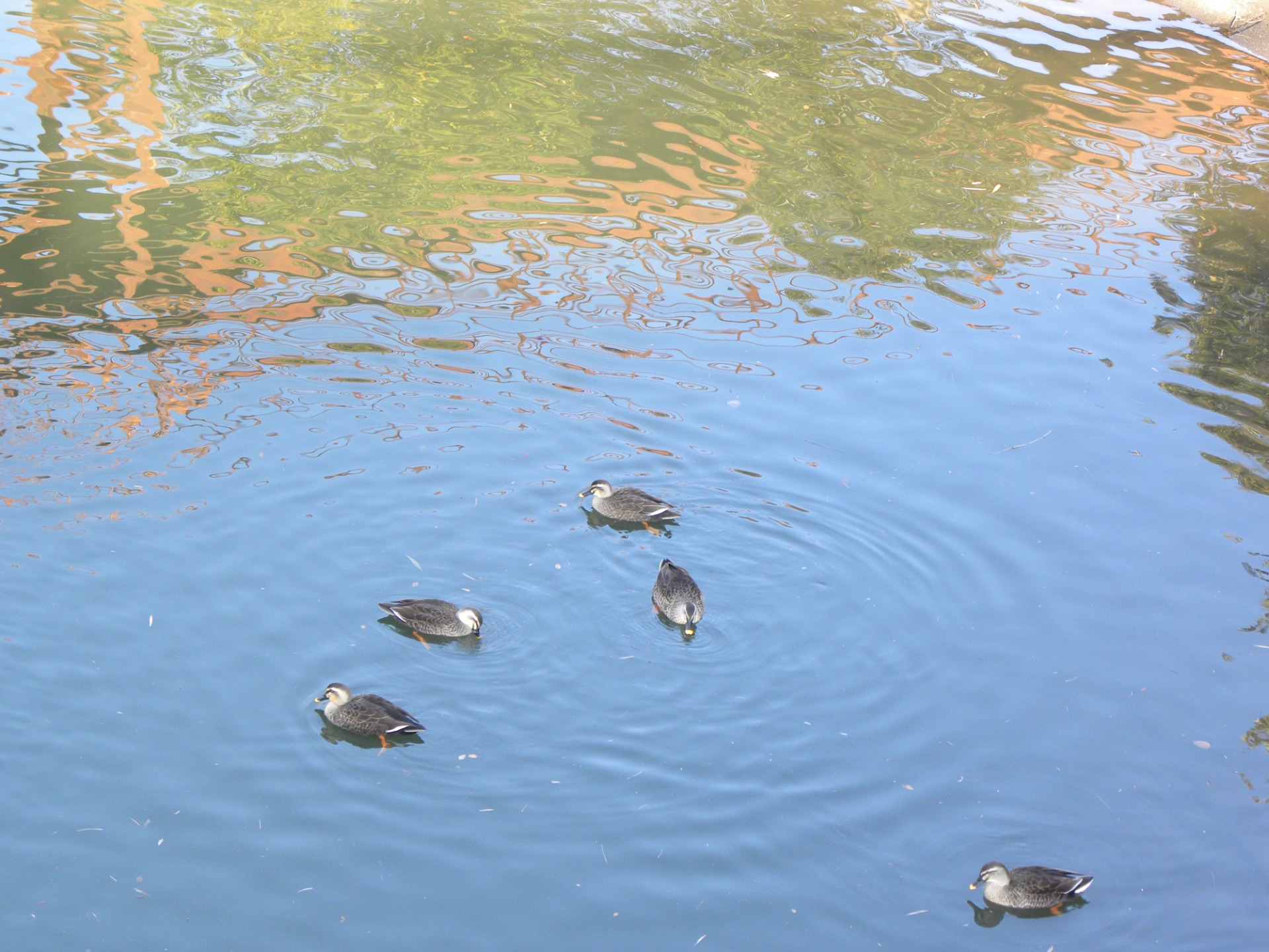 目で見るより、水面がきれいに撮れています。穏やかな時が流れる昼下がり。近くの公園にある調整池で、水鳥が浮かんでいました。「のんびり」の言葉が合うけれど、見ている側も癒されました。