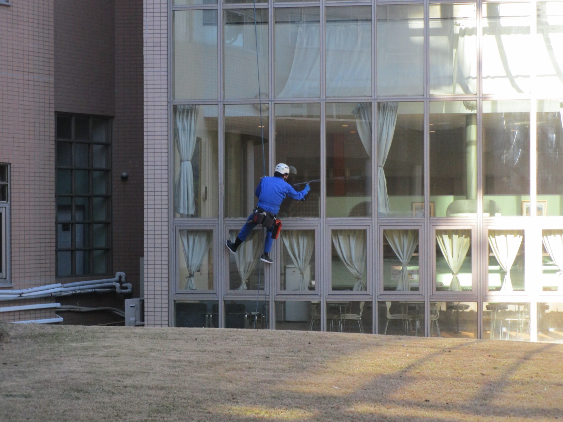 スパイダーマンのような人が、ガラス拭きをしていました。画面右側の、優しい冬の日差しが何とも温かな雰囲気。新年になり、早9日目です。いろいろ、いろいろ動き出しています。