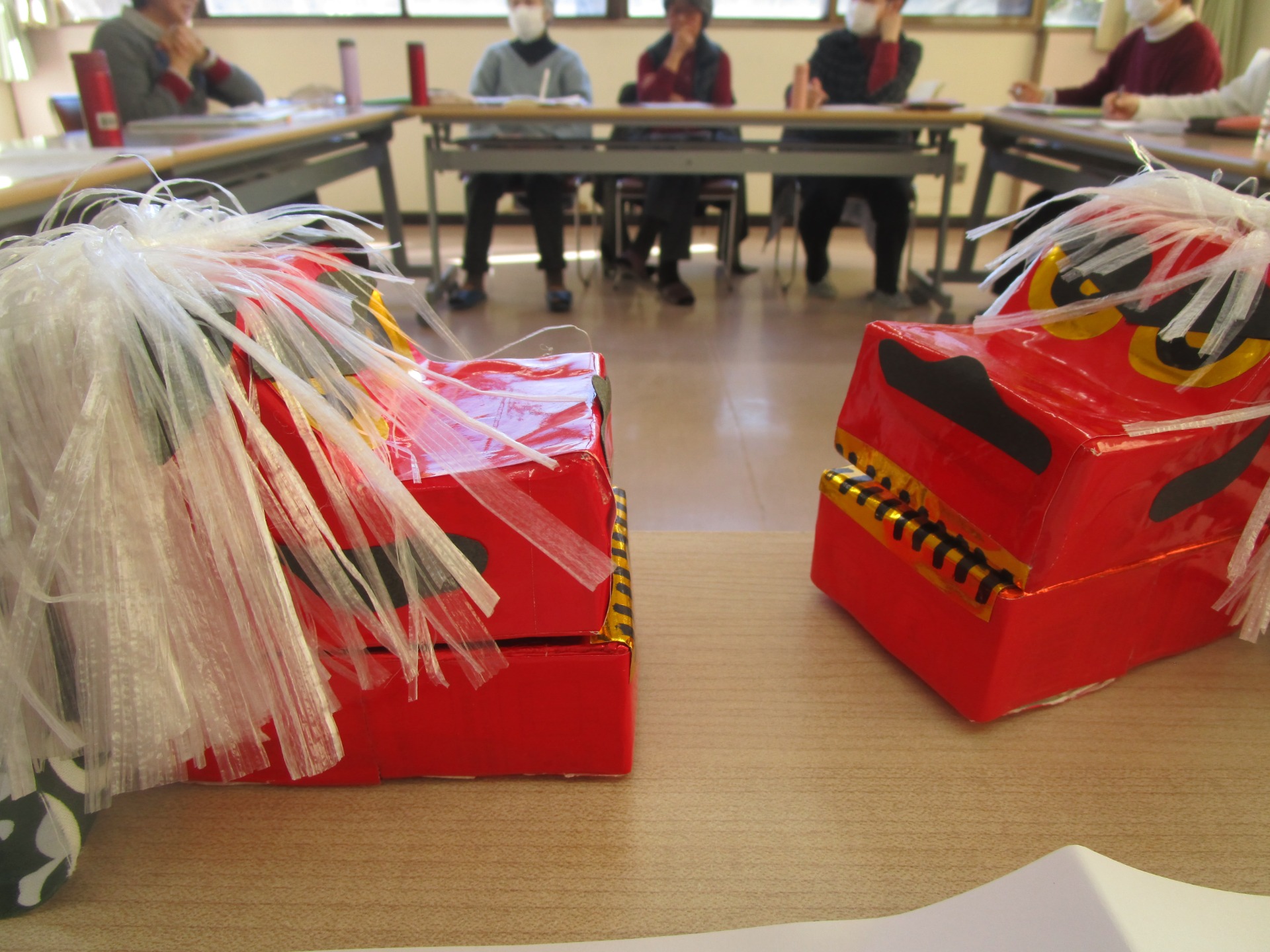 「おはなしバスケット」の会を開催。3月までの予定の確認、来年度の大まかな計画。いろいろ話し合いました。年に1回登場する「獅子頭」(牛乳パック製)今日のおはなし会に登場します。今年も始まり。